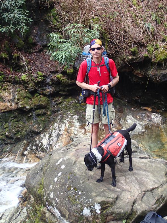 Thomas and Tennille graduated from Guide Dogs for the Blind (GDB) in September, 2012. Since that time, the pair has trekked 6,000 miles together, completing numerous thru hikes, including the 1,000 mile Mountains to Sea Trail (NC), The Colorado Trail, Long Trail, & the Tahoe Rim Trail. They have summited Mt. Elbert (CO) and have gone on numerous treks throughout the U.S. Tennille is the only guide dog to have been successfully trained to perform back country guide work in addition to her normal guide duties.